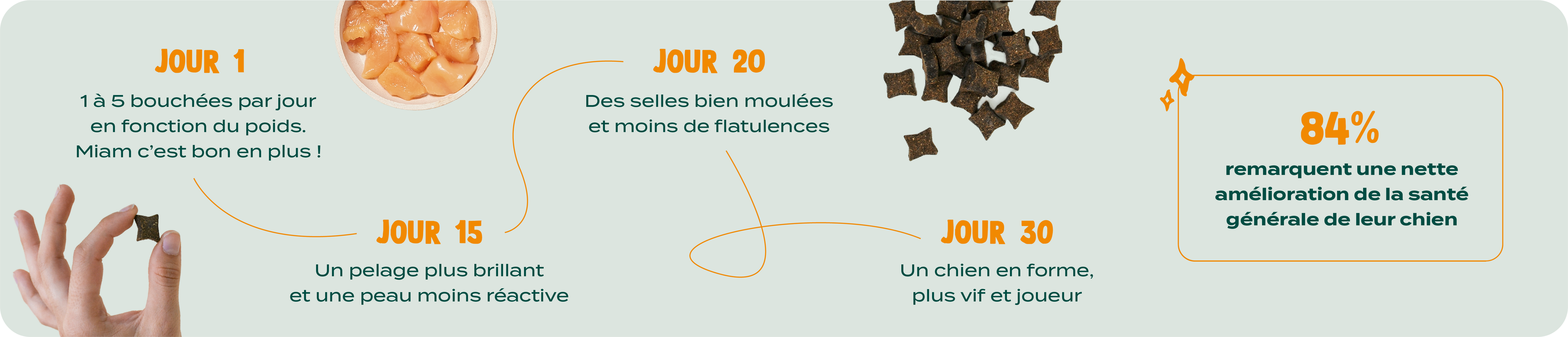 Elles participent à renforcer la peau, le pelage, l'immunité, la digestion et l'hygiène bucco-dentaire des chiens.